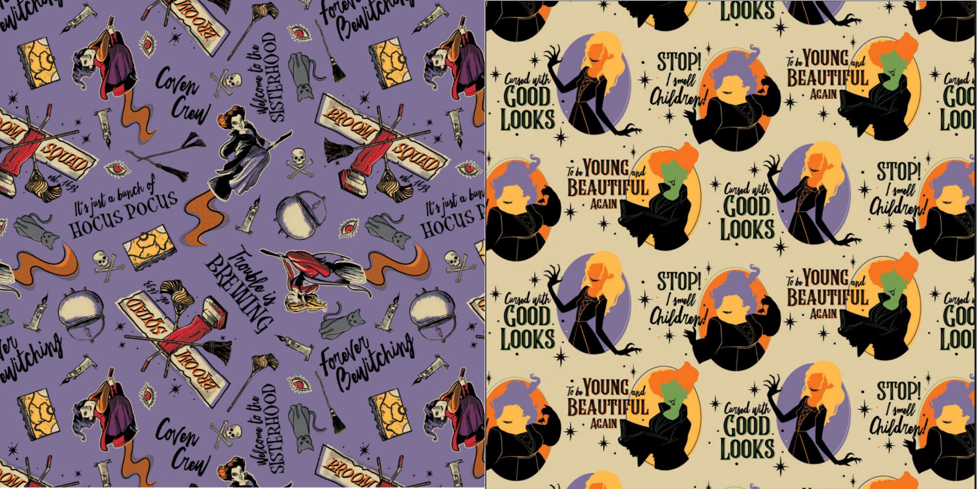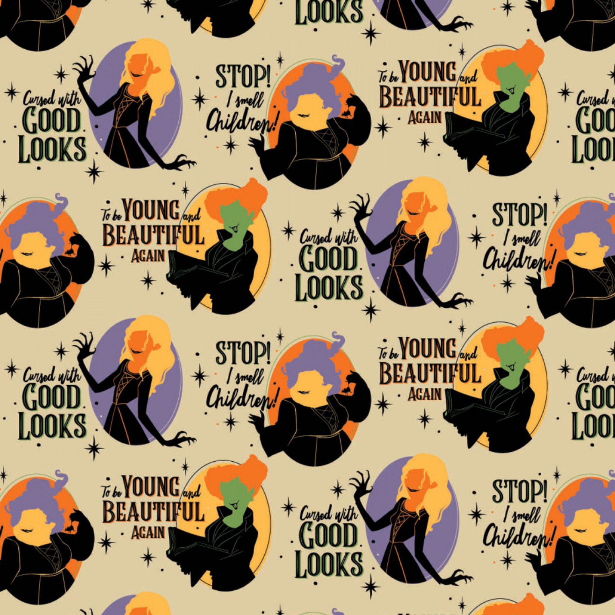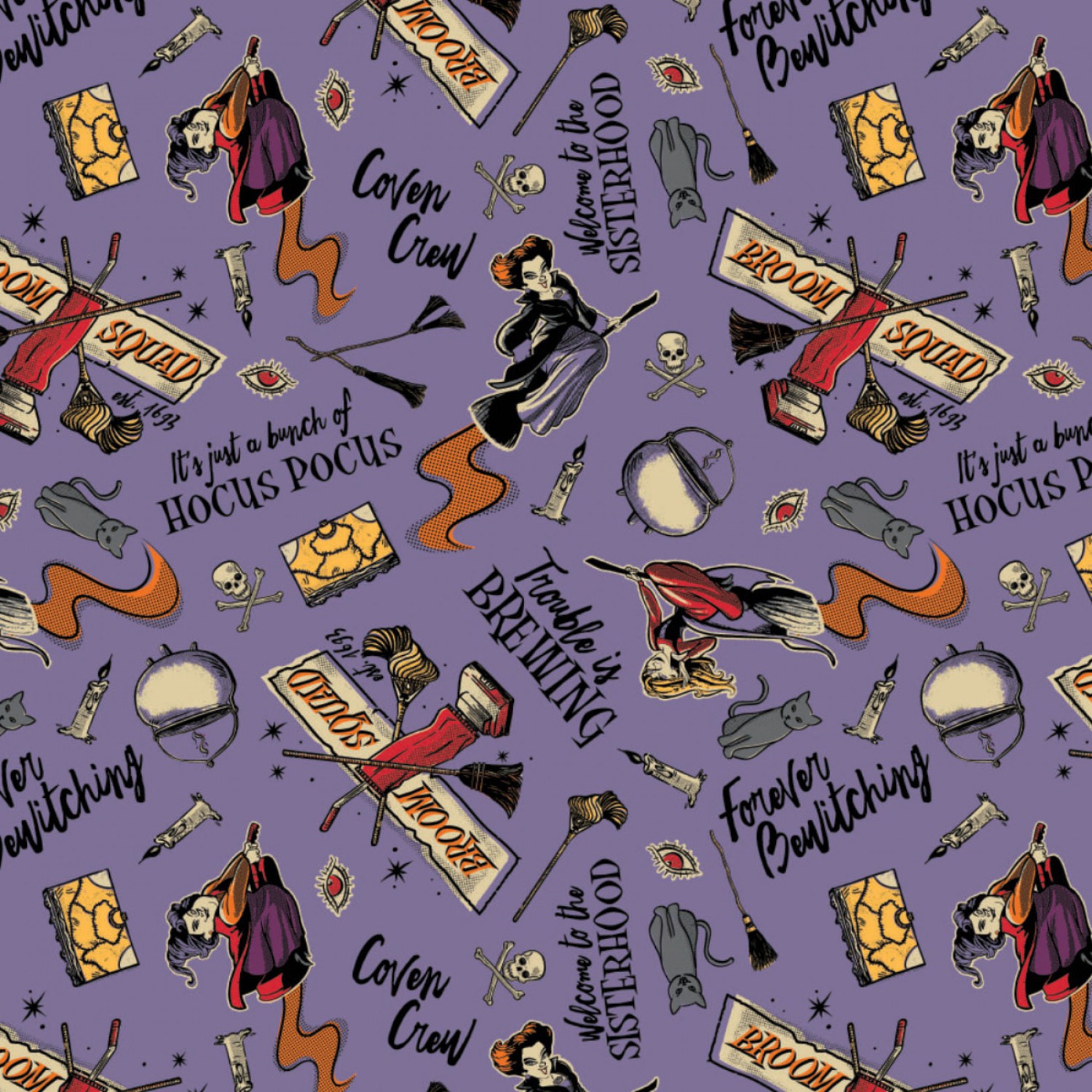 Winifred, Sarah and Mary are in the house!! The time is fast approaching when the Coven Crew must suck the life out of children....well maybe not really! Manufactured by Camelot in 100% Cotton.