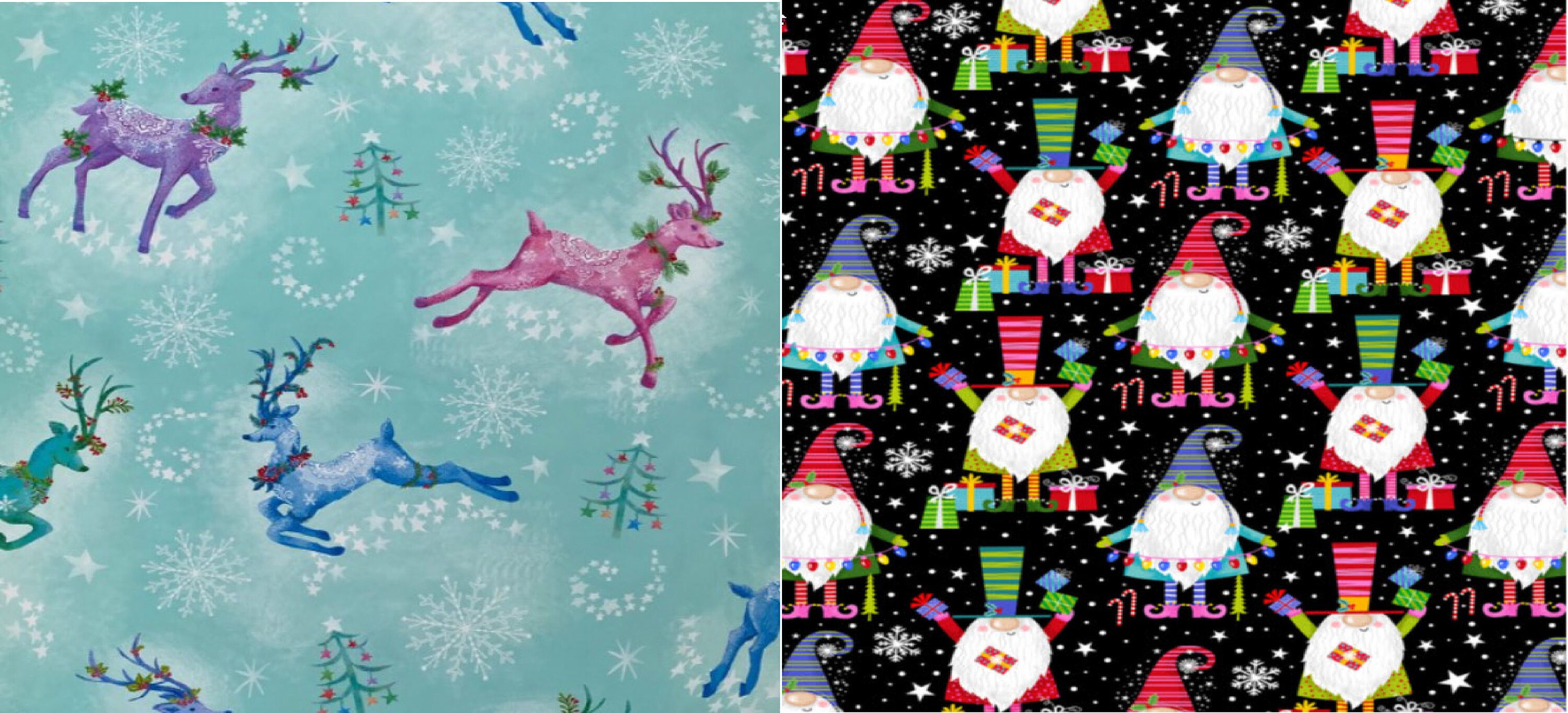 These Fabric Traditions prints are ever so cute and sure to make anyone smile this holiday season! There is a metallic element to these (glitter because you know.....you have to have glitter at Christmas!) so no bowl cozies in the microwave...but sleep pants....christmas stockings....everything else is perfect for these prints!! Manufactured in 100% Cotton by Fabric Traditions.
