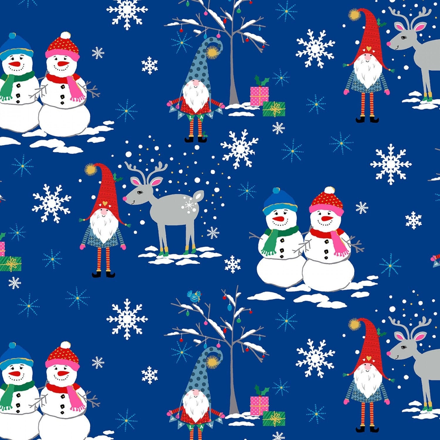 Snow Village by Michael Miller is an adorable Winter Holiday print! It is a fairly large scale print done in vibrant colors on a gorgeous bright blue background. It is part of the Holiday FaLaLa line.