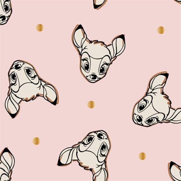 Camelot Cotton's Cute And Wild line features Bambi Heads tossed on a pink solid background with metallic gold dots . Coordinates perfectly with the Bambi Fawn dot print and 22x17.5" panel which are also listed for your review. Fabric is 100% Cotton.