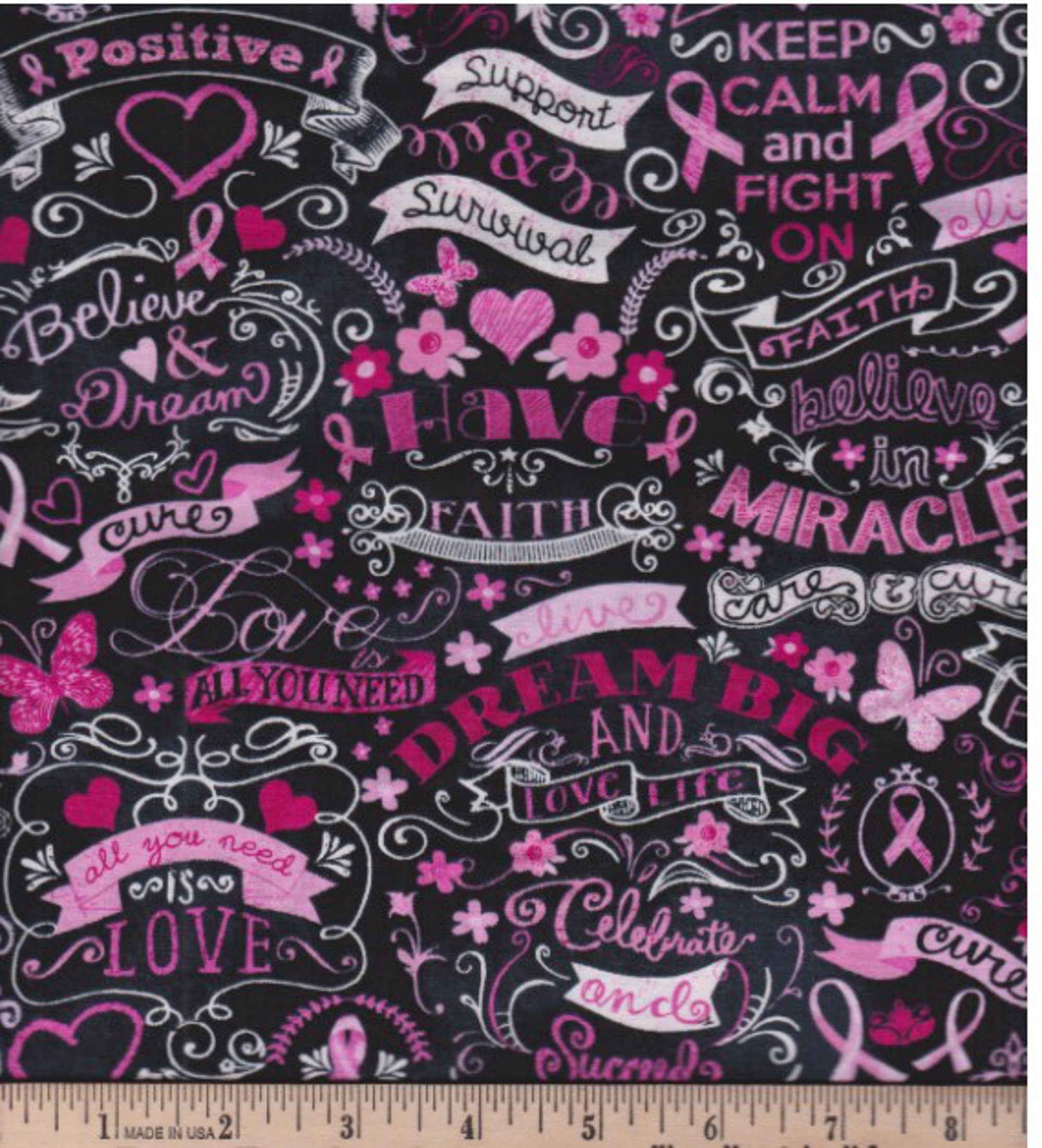 Breast Cancer Awareness Pink Ribbon Fabrics! 4 choices! Manufactured by David Textiles, Elizabeth Studios and Timeless Treasures all of 100% Cotton