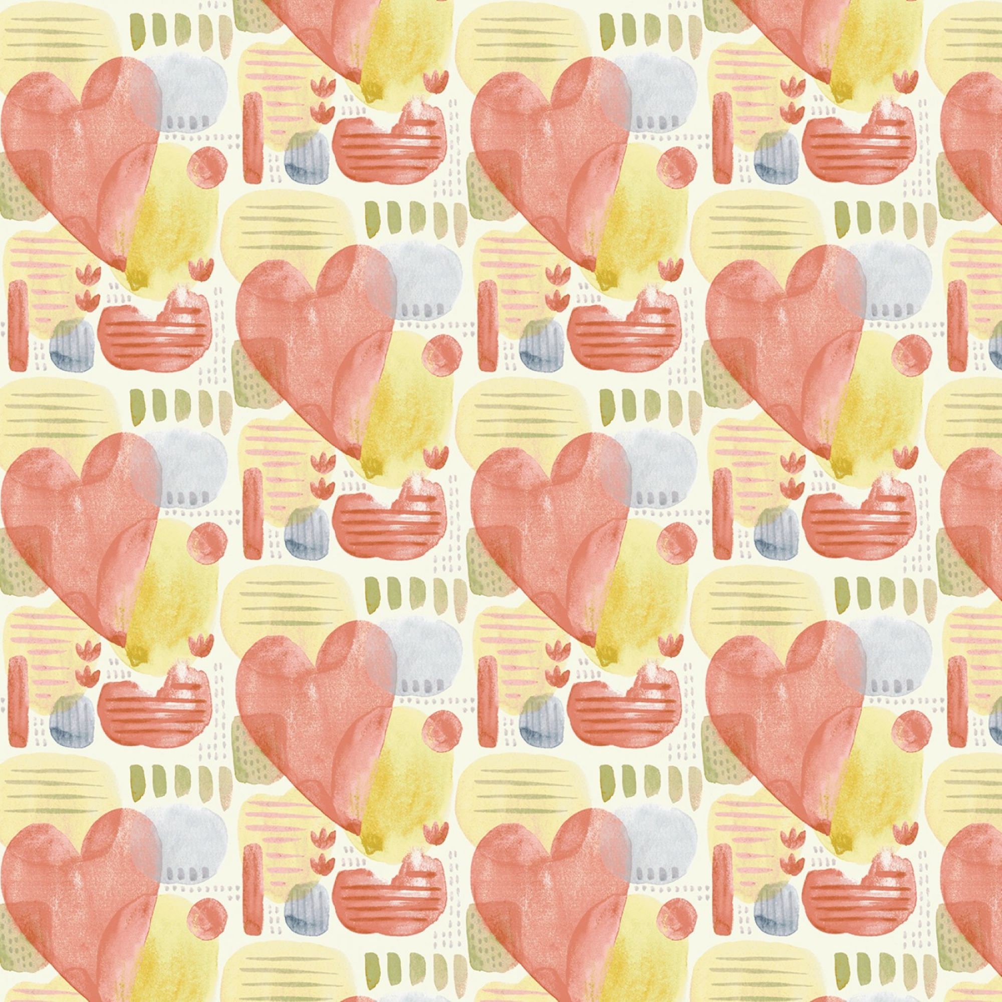 Hearts in a muted coral color are featured in the print from Jane Alison's Blessings collection. Manufactured by Henry Glass in 100% cotton.